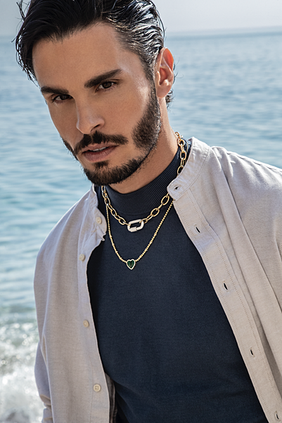 APM珠寶多元的風格,跨越性別與年齡,無論是出席重要場合或是日常生活配戴都是絕佳選擇。看Charles Leclerc輕鬆將「YUMMY」系列泰迪熊墜飾珍珠項鍊駕馭的如此無違和感,展現出中性世代的多元及創意,打破性別間珠寶慣有的搭配定律,增添豐富變化的多樣性。