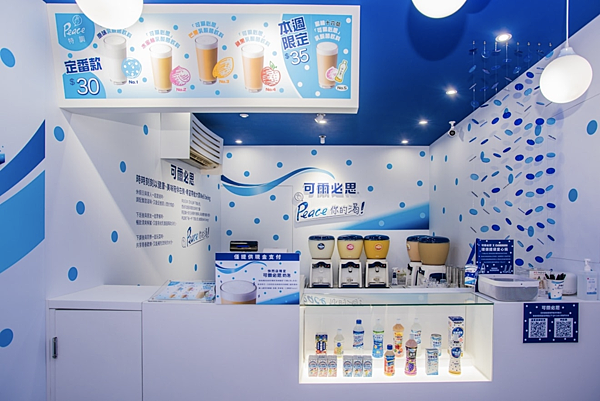 這幾年因為疫情帶給民眾許多不方便,隨著疫情解封,「可爾必思」決定開設期間限定飲料快閃店直接和消費者面對面互動,帶給大眾美味與歡笑。快閃店提供4款定番款「可爾必思」乳酸菌飲料和每周替換的限定特調,每款皆使用獨家清爽酸甜「可爾必思」奶泡,與平常喝的瓶裝「可爾必思」不同,一次能享受奶泡與飲料的兩種口感和風味,每一口都超Peace!
