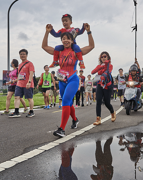 今天參賽者中最引人注目的為全場年紀最小的「跑者」,年僅三個月大的小寶寶也跟著熱情的爸媽跑者來共襄盛舉,本身為超級蜘蛛人狂粉的爸爸,全程揹著嫩嬰一起完成路跑,衝過終點線後他開心的笑道:「這感覺就像電影中的中年彼得B.帕克一樣,帶著寶寶一起為蜘蛛人聯盟奮鬥,我一直都希望能與小孩分享我喜歡做的事,這次的路跑圓了我作為一個童心未泯爸爸的夢!」