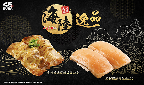 藏壽司「海陸逸品」推出獨特口感滋味的「黑胡椒燒霜鮭魚」、「炙烤燒肉醬豬五花」!7家店舖限定「熟成鮪魚大脂」更不能錯過!