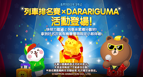 一起來挑戰!「DARARIGUMA」列車排名賽開跑!