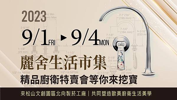 睽違三年,一場廚具、衛浴以及室內設計界的盛事「麗舍生活市集」特賣會即將於9月1日開啟。這個令人期待已久的廚衛特賣活動,於9月1日至4日僅有四天,於台北松山文創園區北向製菸工廠一樓舉辦。