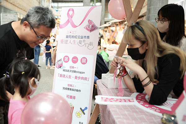 為提醒民眾關注乳房健康,「曼陀粉紅公益市集」10月14日首度於大直美麗華百樂園的海景樹穴廣場盛大舉辦,現場邀請超過20組烘焙、花藝、手作飾品等攤位一齊響應,市集以粉紅色為主色調,呼應全球防治乳腺癌標誌的粉紅絲帶。台灣年輕病友協會理事長潘怡伶也出席致詞,希望團結民眾的力量,推廣「2023曼陀粉紅公益計畫」理念,使更多人正視乳癌的相關議題,關懷乳癌患者預後的人生之路!
