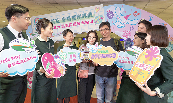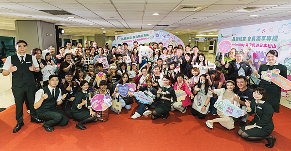 為了讓會員留下美好的搭機體驗,此次會員限定航班適逢Hello Kitty 50週年,長榮航空特別安排Hello Kitty派對機執飛此趟任務,與所有會員同遊日本松山。此外,長榮航空也打造了充滿歡樂氛圍的候機室,獨家設計會員專屬的三麗鷗明星家族迎賓拱門、拍照背板,現場還陳列各項長榮航空Hello Kitty彩繪機繽紛的服務用品,別出心裁的布置,讓旅客開心不已,紛紛拿起手機拍照打卡留念。