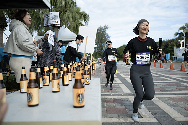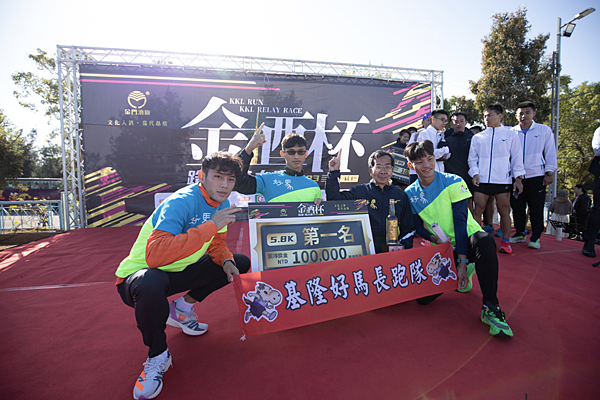 ▲ 金酒杯接力賽第一名的隊伍是基隆好馬長跑隊,成績為20分02秒,獲得10萬元等值酒品