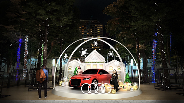 夜賞系列~ ATT戶外耶誕大型裝飾此次由AUDI贊助,展期長達1個月,AUDI結合繽紛大型耶誕樹之外,更加入一顆超大型夢幻水晶球,讓消費者在賞車之餘同時也走入童話世界般的場景之中,將會是信義區眾多網美拍照取景的熱門景點。