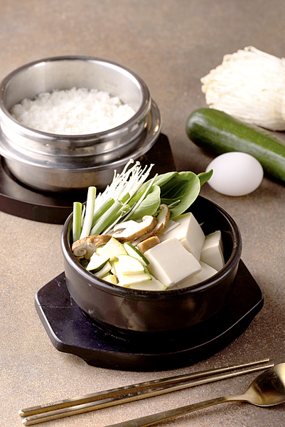 ▲江陵阿嬤강릉할매_素食者有五辛素的「綜合菇菇嫩豆腐鍋」可品嚐