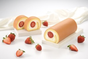 #1如紅寶石般閃耀剔透的新鮮草莓,柔軟泡芙蛋糕與香水草莓共舞的「鮮採草莓生乳捲」