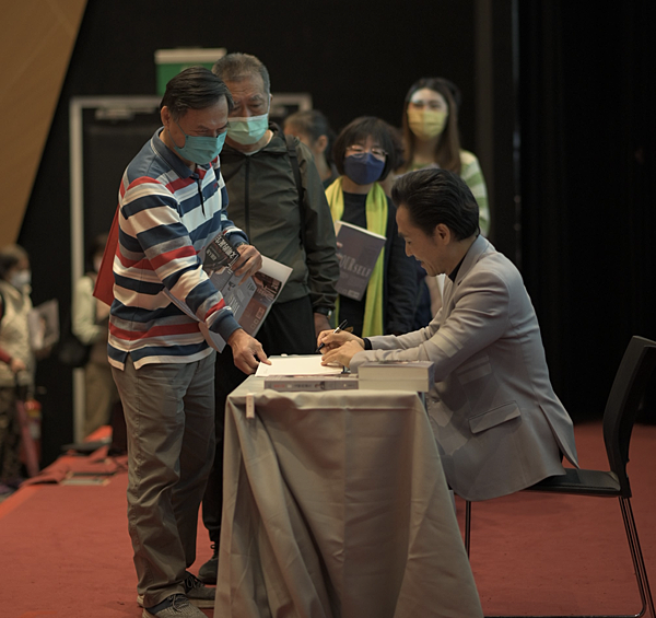 ▲許多熱情讀者拿著剛到手的新書上台讓教育家歐青鷹親筆簽書。(照片/主辧單位提供)