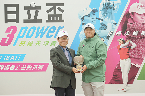 台灣日立亞太股份有限公司副總經理松原隆二(左)頒發MVP獎盃給男子隊高藤(TLPGA提供_葉勇宏攝)