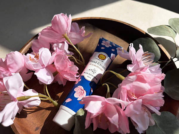 「櫻花輕潤舒敏護手霜」蘊含COSMOS天然認證染井吉野櫻,它最早起源於韓國濟州島,在四月初開花,能有效舒緩調理膚況,維持手部健康,再以聖約翰草油修護保養,滋潤肌膚同時安撫放鬆情緒,是一款專為敏感肌打造的護手霜。