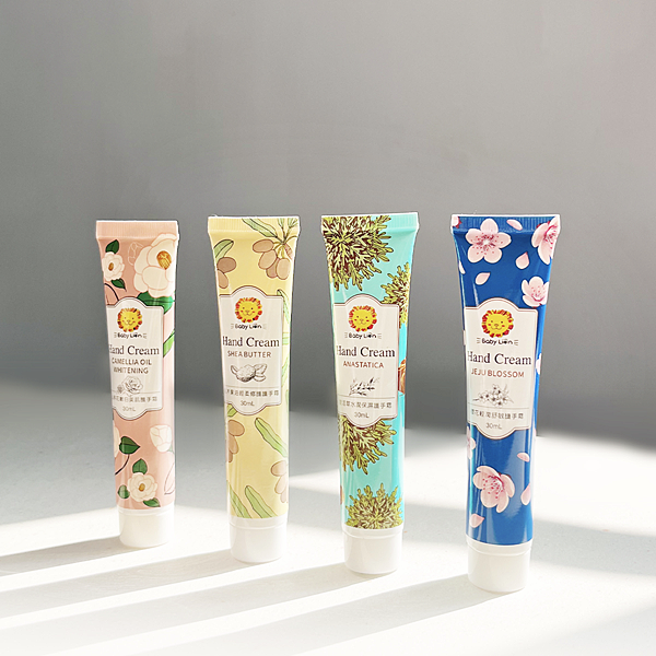 《獅子寶寶Baby Lion》大人系植萃護手霜全系列_(左起)山茶花、乳木果、復活草與櫻花