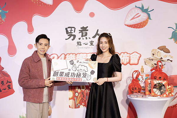 「男煮人點心室」由各大美妝品牌、節目以及藝人御用的凱鈞老師所創辦!身為「煮理人」的凱鈞老師也現身為大家介紹品牌理念;好友愛雅更特別到場獻上祝福,並以「師姐」與創業過來人之姿傳授創業秘訣!期望新品牌蒸蒸日上。而草莓季的限定新品「草莓軟糖派」更結合金黃酥皮及軟糖內餡,打造多層次幸福口感;此外,「龍鑫大悅福袋禮盒系列」則是凱鈞老師2024年特別推出的喜慶系列,任何喜慶節日贈禮皆適宜,也將高人氣的一桶金花生脆糖、巨仁腰果...等開運點心一次收納成紅火福袋,讓大家一口香甜,樂饗好年!