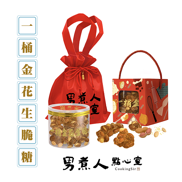 紅通通小福袋/小提盒提供兩款新品:一桶金花生脆糖、巨仁腰果