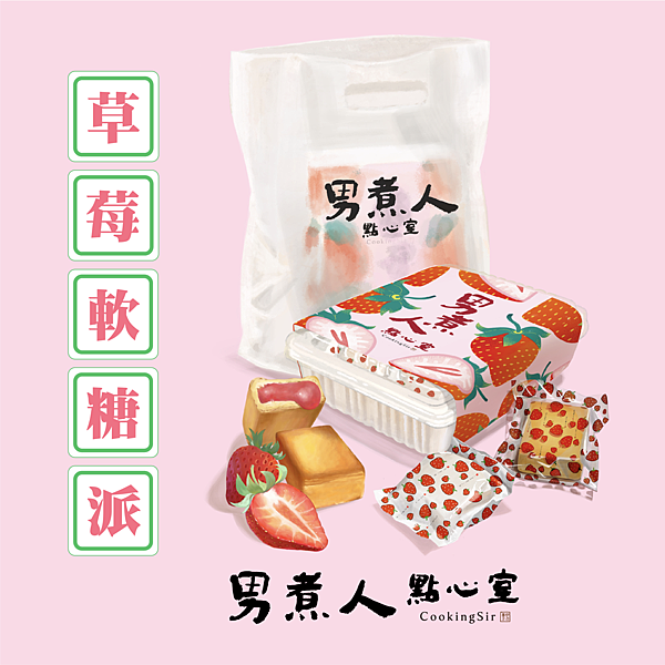 適逢喜慶年節以及草莓的季節,品牌趁勢推出了限定新品「草莓軟糖派」,愛吃草莓的凱鈞老師表示:「這是我很喜歡的點心,它有著金黃酥脆外皮,一口咬下是軟糖口感的草莓內餡,微酸微甜,每一口都覺得超級幸福!」除此之外,節慶必備的禮盒項目,「男煮人點心室」也大家準備好了:「今年我們還推出了『龍鑫大悅福袋禮盒系列』,將點心融合傳統風味與創新思維,完美結合在全新系列禮盒中,食在大方、體面又好好吃!」小禮盒包括一桶金花生脆糖、巨仁腰果兩項新品;大禮盒則有好運連連禮盒(小可愛奶油派+典藏核桃糕+浪蔓杏福牛奶糖)以及大吉大利禮盒(大地種子紅 Q 糖+典藏核桃糕+浪蔓杏福牛奶糖)的綜合口味伴手禮,要是想要包裝成紅通通的福袋也沒問題,絕對是佳節喜慶的禮品首選!