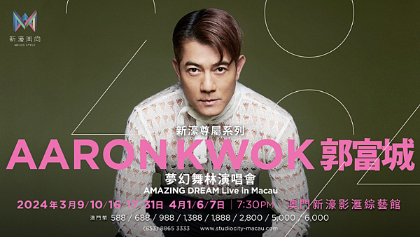 購票及相關詳情,敬請瀏覽:https://www.studiocity-macau.com/tc/offer/melco-style-residency-concert-aaron-kwok