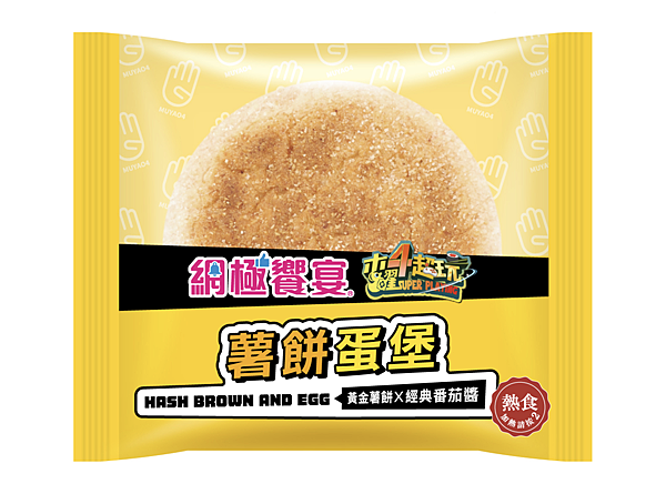 1. 二段式高溫油炸黃金薯餅,炸香不油膩 2. 香烤雞蛋佐經典蕃茄醬,搭配微波後香Q馬芬堡,熟悉美味重現
