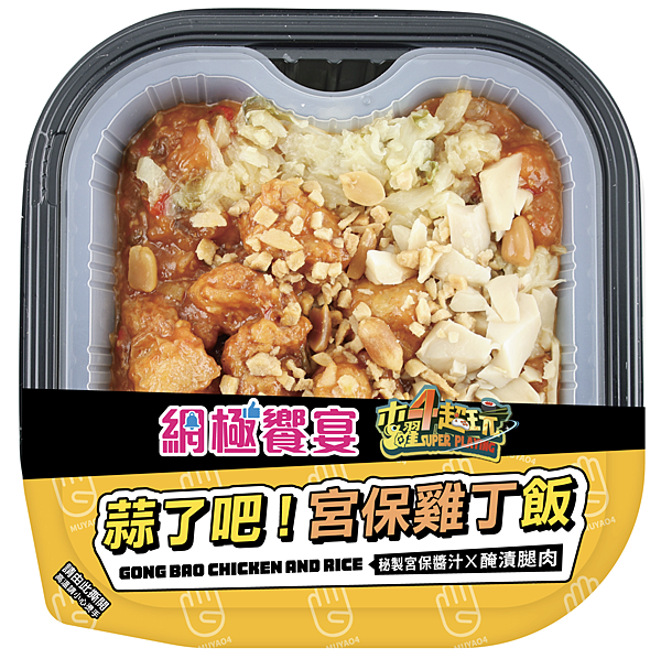 1. 木曜4超玩第一屆廚藝大賽冠軍鮮食化商品。 2. 秘製宮保醬汁搭配去骨雞腿肉丁,並加入高麗菜與杏鮑菇爆炒,口感豐富且醬香十足。