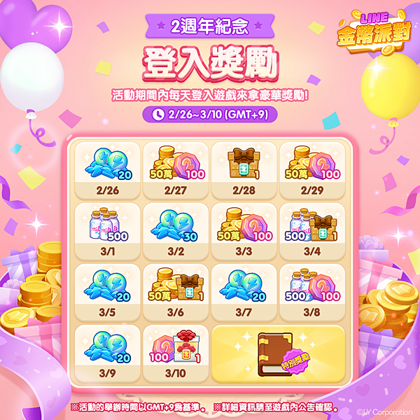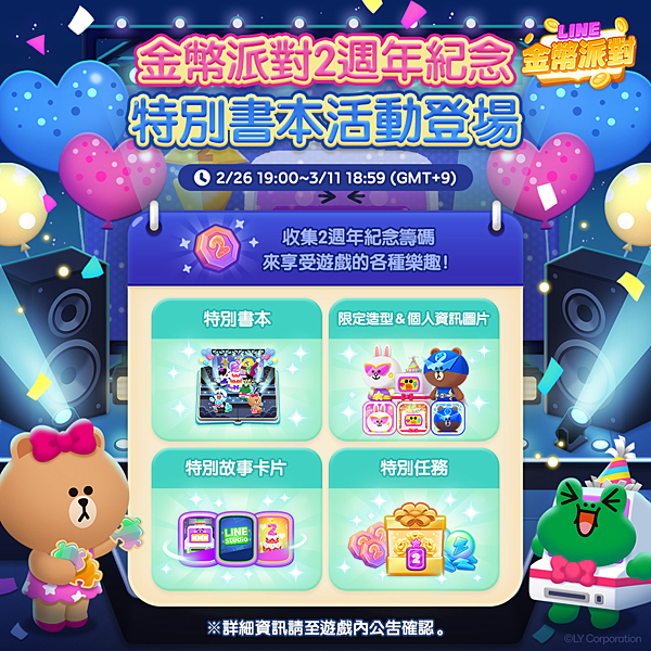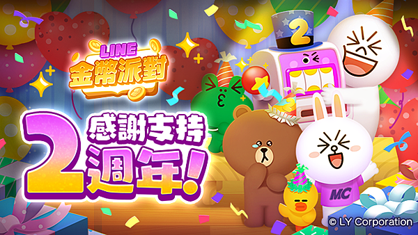 LINE GAME旗下休閒金幣遊戲《LINE金幣派對》(適用iPhone・Android/免費)自2024年2月28日(三)起即將迎來2週年,為了紀念這個特別的日子,即日起將展開2週年紀念活動。