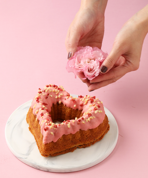 玫瑰心鑽蛋糕濕潤綿密,入口餘留玫瑰、草莓香氣 圖/金格食品提供