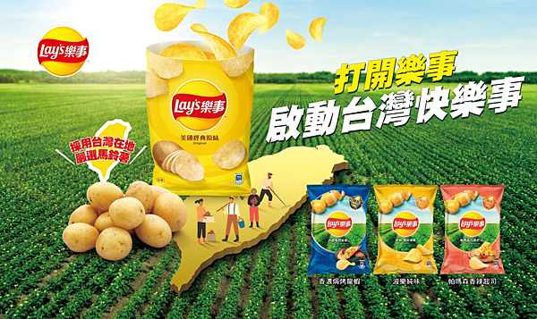 樂事推出期間限定的「台灣馬鈴薯」洋芋片,選用來自契作小農及最優質的春收在地馬鈴薯,以美式風格重新詮釋台灣的在地嚴選美味。