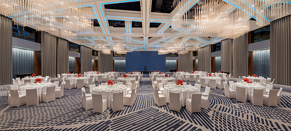 位於台北W飯店8樓的兩大宴會廳──「綺麗廳」與「風尚廳」,以時下室內設計新寵的莫蘭迪色系為基調,賦予現代感和W品牌一貫的大膽個性。其中,綺麗廳以其大面落地窗廣受新人喜愛,自然採光為室內注入清新明亮的活力,坐擁信義區街景更顯大器風範。270坪寬敞氣派的風尚廳由多廳組成,最高可容納58桌、亦可依據來賓人數彈性調整場地,變化為不同格局。挑高6米的天花板上設置幻彩交織LED燈與水晶吊燈,兼具時尚與奢華氛圍。廳內全無樑柱遮蔽,讓每位座上賓皆擁有完整視野,盡情沉浸於浪漫盛會。此外,9樓與11樓另提供「商情會議室」和「策略會議室」等空間選擇,滿足家宴及精緻桌數的宴客需求。