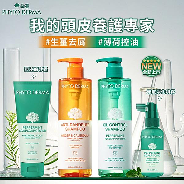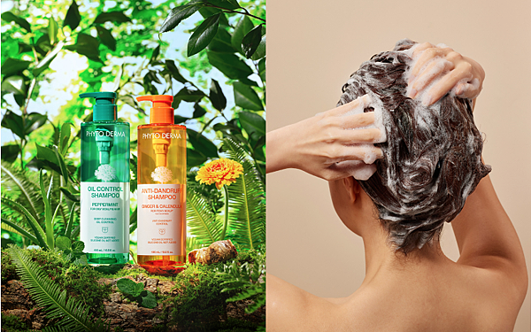 朵蔓Phyto Derma草本系列推出兩款洗髮精: 草本控油薄荷洗髮精和草本生薑去屑洗髮精,可以照個人頭皮狀況需求做使用選擇,將頭皮、頭髮上的灰塵與皮脂洗乾淨。