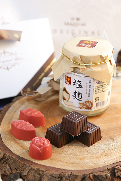 台糖長榮酒店繼2022年酒店推出驚奇創意的「藝饗魔炫巧克力禮盒」以嚴選臺南在地農產品包含豆腐乳、黑蒜頭和烏梅,特以國際化巧克力製作技術,跳脫古典巧克力褐色視覺印象,注入夢幻色彩賦予魔法炫彩造型,獲得許多顧客喜愛與回購!此次酒店與臺鹽公司合作,點心主廚再次以新鮮在地發想,透過魔法調味,將烹調料理用塩麴加入牛奶巧克力和玫瑰花醬,製作出意想不到的《含餡玫瑰塩麴巧克力》,一口咬下滿是撲鼻玫瑰花香四溢的夢幻氛圍,幸福感瞬間噴發;而另一款《含餡松露塩麴巧克力》松露醬與塩麴巧克力之間,兩股清新濃郁鹹味調和,絕對是獨具創意天然兼顧回甘尾韻的驚豔甜品。