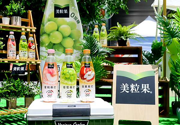 「美粒果」零加糖鮮果蘇打採用產地嚴選果汁,搭配綿密氣泡口感,每份熱量低於15大卡,全系列三款各具特色的風味提供消費者多元化的選擇。
