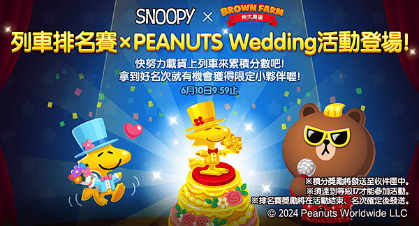 【圖四】「PEANUTS Wedding」列車排名賽開跑,邀請農友一起上車獲得合作限定獎勵!
