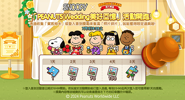 【圖八】「PEANUTS Wedding」活動,集滿「照片碎片」獲得限定道具