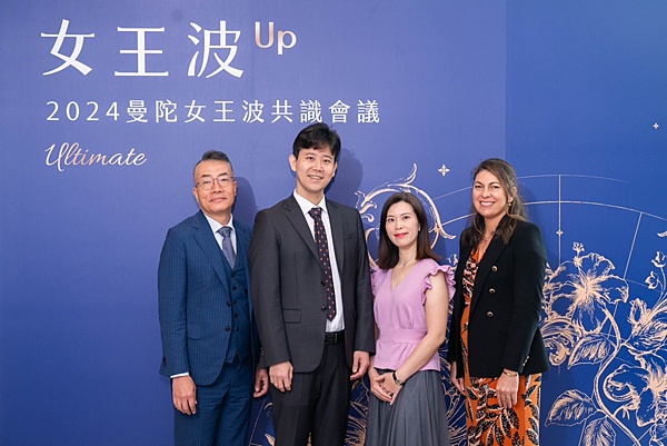 (《2024曼陀女王波共識會議》由緻美整形外科診所院長洪至正醫師(左一)、元和雅整形外科林莉穎醫師(右二)擔任座長;Dr. Dong Yeon Hwang(左二)、美國嬌生亞太區副總裁 Sarah Najdek(右一)擔任講師。)