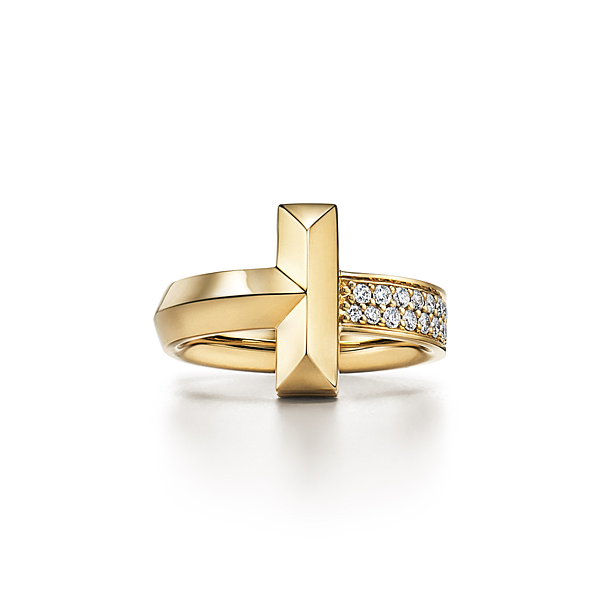 Tiffany T1 18K黃金寬版鋪鑲鑽石戒指 約NT$244,000