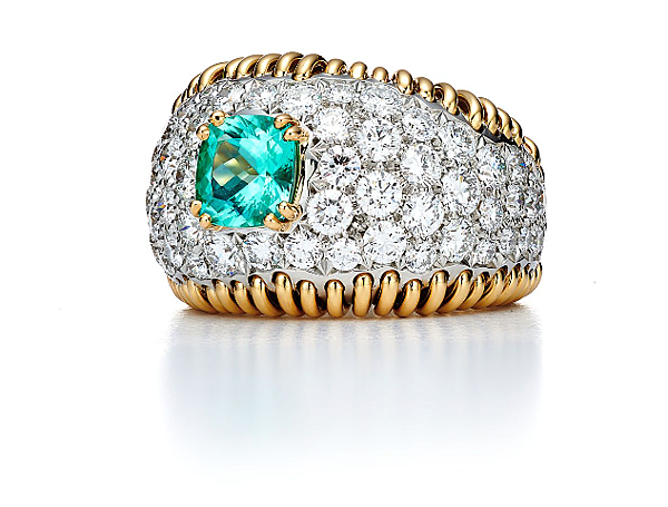 Jean Schlumberger by Tiffany 18K金與鉑金枕型切割藍色銅鋰碧璽鑽石戒指 約NT$ 6,850,000