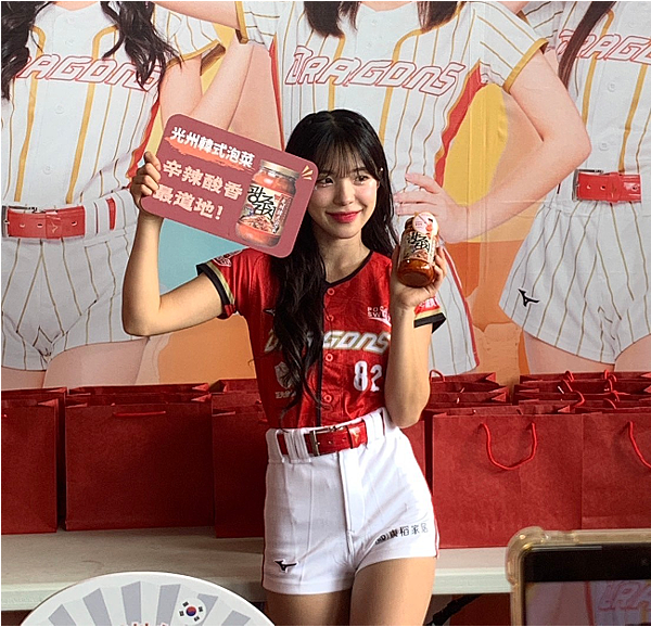 味全龍對戰台鋼雄鷹的精彩球賽於上週六在天母球場熱烈開打,除了精彩的球賽對戰,場外更有許多活動攤位與球迷同樂。味全明星產品光州韓式泡菜攤位也在當日的球場外熱鬧登場,更重磅邀請到小龍女啦啦隊女神李多慧,出席攤位活動並大啖泡菜,吸引大批粉絲到現場支持。