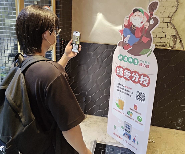 在體驗「練愛分校」的活動中,每個人都可以透過手機在現場召喚出特別版月老,接受月老的各項課程與測驗後將能得到專屬的戀愛證書,除此之外,在一步步學習愛情的過程中,更可以同時走訪大稻埕商圈的在地百年店家,並欣賞大稻埕的文化地景風貌,絕對是一趟好逛又好玩的約會行程!