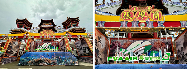 長榮集團已故創辦人暨總裁張榮發先生成長於基隆,對基隆有深厚的感情,因此張榮發基金會贊助基隆「鷄籠中元祭」活動,除表達對此文化盛典的重視與支持,也是對張總裁故鄉的回饋,圖為吸睛可愛的長榮航空燈車以Q版飛機為主體,加上航點地標,目前置放於主普壇前供民眾欣賞拍照。
