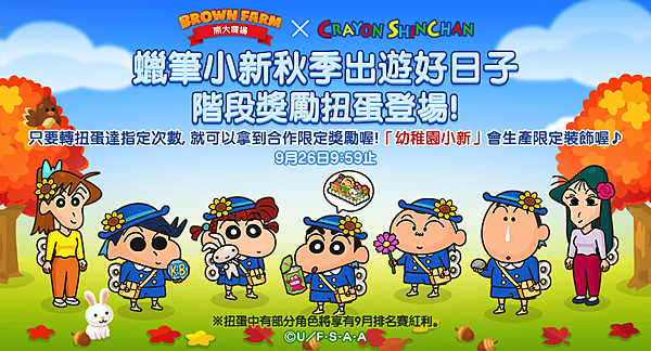 ◆ 「蠟筆小新秋季出遊好日子」階段獎勵扭蛋登場!