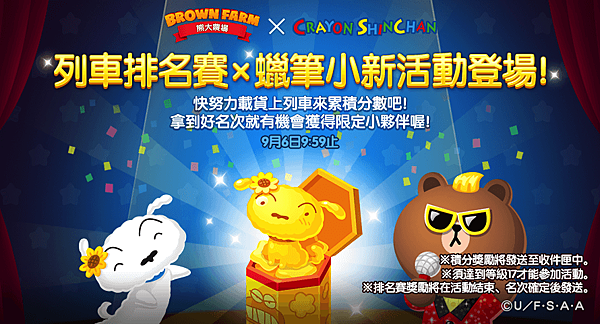 【圖五】「蠟筆小新」列車排名賽開跑,邀請農友一起上車獲得合作限定獎勵!