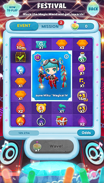 追加獎勵:「初音未來“魔法未來(MAGICAL MIRAI)”扭蛋券」、無限水槍(10分鐘)