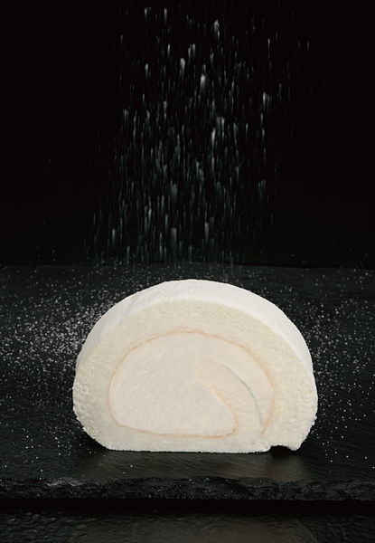 蛋糕捨棄蛋黃和奶油僅以蛋白打發,純淨潔白似雪,淡淡的米香來自於池上優質水磨米穀粉,帶來更加輕盈、綿細與紮實的口感,更能凸顯北海道奶霜豐厚的乳香與絲滑清爽的質地,融雪般入口即化,如雪精靈召喚魔法,一片雪白,瞬間封存純淨美味。