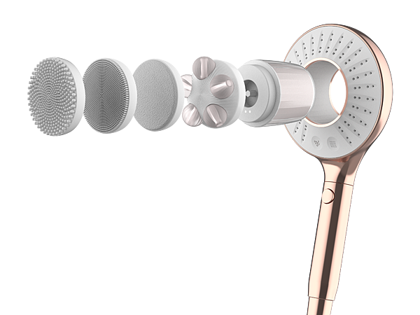 榮獲今年IF設計獎的SpaViva多功能美肌手持花灑,以其獨特的創新設計提供一站式的居家清潔護理解決方案。SpaViva手持花灑全身IPX7防水,藉由強力磁吸讓手持花灑結合各種刷頭:潔面儀、去角質刷、身體按摩球、身體清潔儀,各刷頭亦可單獨使用,滿足多種洗浴需求。