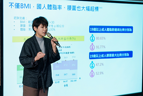 ⚫ 以BMI為標準,台灣18歲以上成人的過重與肥胖率達50.3%【1】;19歲以上國人的腰圍過粗比例,男性近 5 成(47.2%)、女性更超過半數(52.9%)【2】,體脂肪過高比例更加嚴重,男性超過 8 成(80.65%)、 女性超過 9 成(91.77%)【3】。
