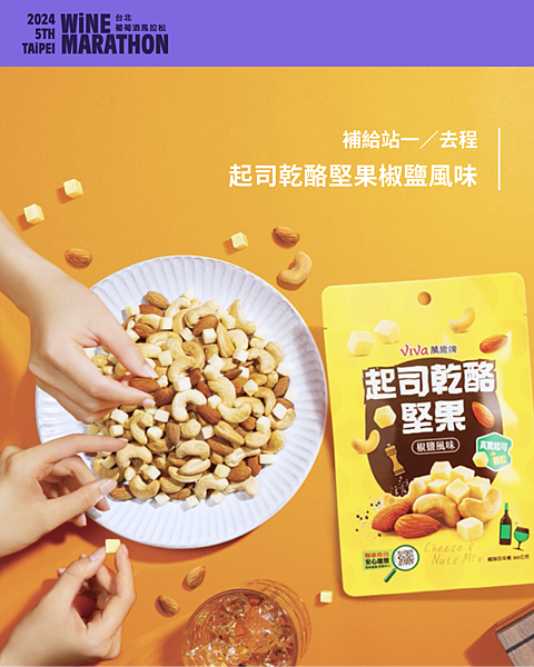 來自歐洲各國的經典產區葡萄酒,佐搭台灣在地品牌的自然飲品、精緻小點,這不只是一場跑步與品飲的馬拉松活動,更是彷彿跑遍世界般的沈浸式餐酒體驗,在完跑馬拉松的成就感之餘,更享受了一場酒與食精彩佐搭的午宴,給認真生活的自己「補給」具層次的滿足感。