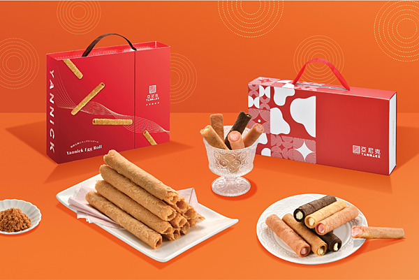 亞尼克「濃濃雞蛋捲肉鬆禮盒」嚴選台灣可溯源雞蛋,以每日生產的新鮮蛋液,搭配特製肉鬆,製作過程不加水,烘焙後薄脆酥香、層次分明,再將肉鬆薄薄地貼附在蛋捲皮一起捲,保有蛋皮炙燒的香氣與濃郁蛋香,酥脆、微甜帶鹹的多層次口感,更顯蛋香可口。「生乳捲風味蛋捲12入綜合禮盒」內含經典原味、特黑還有新登場的草莓風味;使用最經典的生乳捲內餡-招牌北海道奶霜,融合餅乾口感的酥脆外皮,搭配濃郁爆漿生乳內餡,在嘴裡綻放純粹的餅乾香氣與口感,酥脆餅皮裡搭配咀嚼後的滑順奶油餡,恰到好處的份量,送禮解饞都適合。