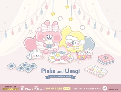 和P助與粉紅兔兔來開趴踢了唷!《卡娜赫拉的小動物-睡衣派對》12/27-2/16就在新光三越台北信義新天地A11 6樓等大家!推出八大晚安系拍照打卡點,就從在門口抱著愛心迎接大家的「立體P助與粉紅兔兔」開拍,接著再到「睡前儀式區」和梳頭的粉紅兔兔與照鏡子的P助甜蜜合照,別忘了旁邊還有著暖暖床和頭戴睡帽的P助、身穿毛絨絨睡衣的粉紅兔兔等你唷!現場推出有著睡衣裝扮的P助與粉紅兔兔的「枕頭套」、「眼罩」、「睡衣」、「抱枕」及「毛毯」等晚安商品,整套買回家給你一夜好眠唷!還有「巨型扭蛋機」來試試手氣,活動期間單筆消費滿$888即可獲得限量「睡衣派對紙膠帶」唷!