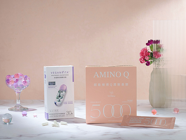 Veganvita 植蘊素維他命全新推出 「超能植感Q潤胺基酸」 與 「冰晶煥白穀胱甘肽」,兩款產品相輔相成,搭配使用效果加倍!「超能植感Q潤胺基酸」(定價 $1090/盒,15 包)萃取天然植物來源,完整呈現與人體第一型膠原蛋白 100%相同結構的胺基酸,緻彈潤澤;搭配 「冰晶煥白穀胱甘肽」(定價 $1290/盒,30 顆),內含日 OPITAC® 98% 專利穀胱甘肽、美國冰晶番茄、日本 Oricera® 專利神經醯胺、日本 95% 高純度玻尿酸與法國西印度櫻桃維他命 C 等多國專利成分,從底層吸收關鍵營養,綻放淨透光彩。