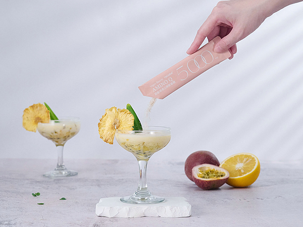 Veganvita 植蘊素維他命 全新推出 「超能植感Q潤胺基酸」,每包高達 5000mg 的素食膠原蛋白補充量,高濃度配方輕鬆滿足每日所需,1 天 1 包,健康美妍輕鬆到位!顛覆傳統動物性膠原蛋白的腥味困擾,「超能植感Q潤胺基酸」 選用純粹植物來源,搭配百香果與鳳梨的熱帶水果風味,口感清新自然、不甜膩,每一口都帶來美味與愉悅的享受,輕鬆補充素食膠原蛋白,讓健康與美妍同步實現。