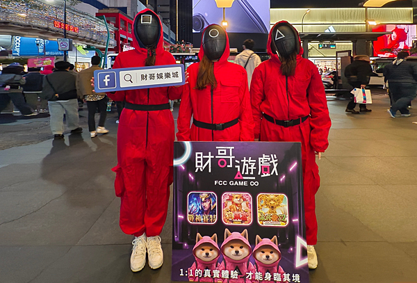為慶祝廣告發布及品牌正式上線,財哥娛樂城於12月27日與12月28日的周末,在信義區打造沉浸式宣傳活動。現場安排三位美女Coser扮演《魷魚遊戲》中的經典守衛角色,分發品牌名片邀請卡,邀請路過的民眾加入財哥娛樂城的線上娛樂世界。活動現場人氣火爆,吸引大批粉絲拍照打卡。