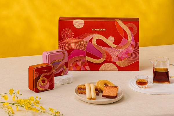 喜迎農曆新年,星巴克以「躍舞迎新春 蛇來好運」為主題推出25款春節禮盒,包括精緻綜合餅乾、糖果、茶點組合、常溫蛋糕禮盒和咖啡禮盒等,凝聚美好滋味及豐沛心意。視覺以小龍蜿蜒型態幻化歡慶彩帶,無論拆禮盒瞬間或翩翩起舞的動態意向,盡是詮釋開年迎春的喜悅與活力。構圖融合層次多變幾何符碼,描繪靈蛇行經之處蛻變出萬物生長、萬花滿開,是為人帶來好運的象徵。色彩運用則以代表多元吉兆的彩虹色系串聯全系列,自奔騰紅、綻放橙、希望黃、卓越綠、智慧藍至豐盛紫,如幸福光束一一點亮未來無限可能。邀請顧客在拜訪親朋好友之時能帶上這樣別具心意的佳禮,在新的一年創造更多人與人之間的珍貴記憶。全系列禮盒即日起開放預購,歡迎顧客至鄰近門市了解更多資訊。